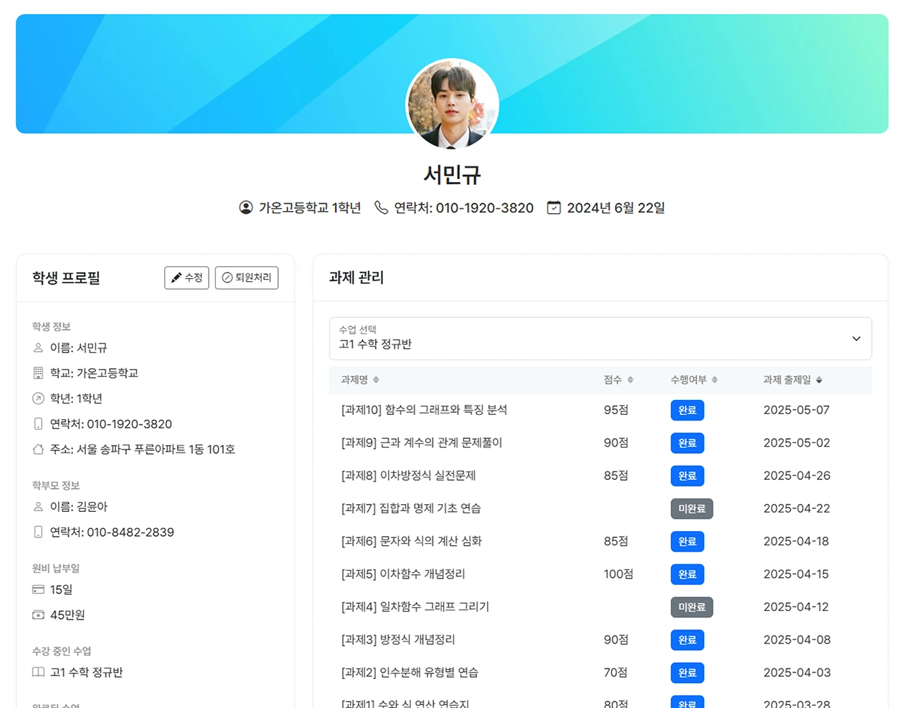 복잡한 툴은 그만! 간편, 효율, 강력, 그리고 직관적인 학원 관리 시스템을 경험해 보세요.